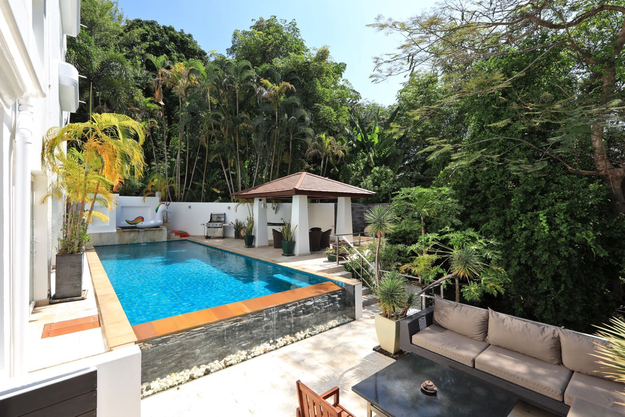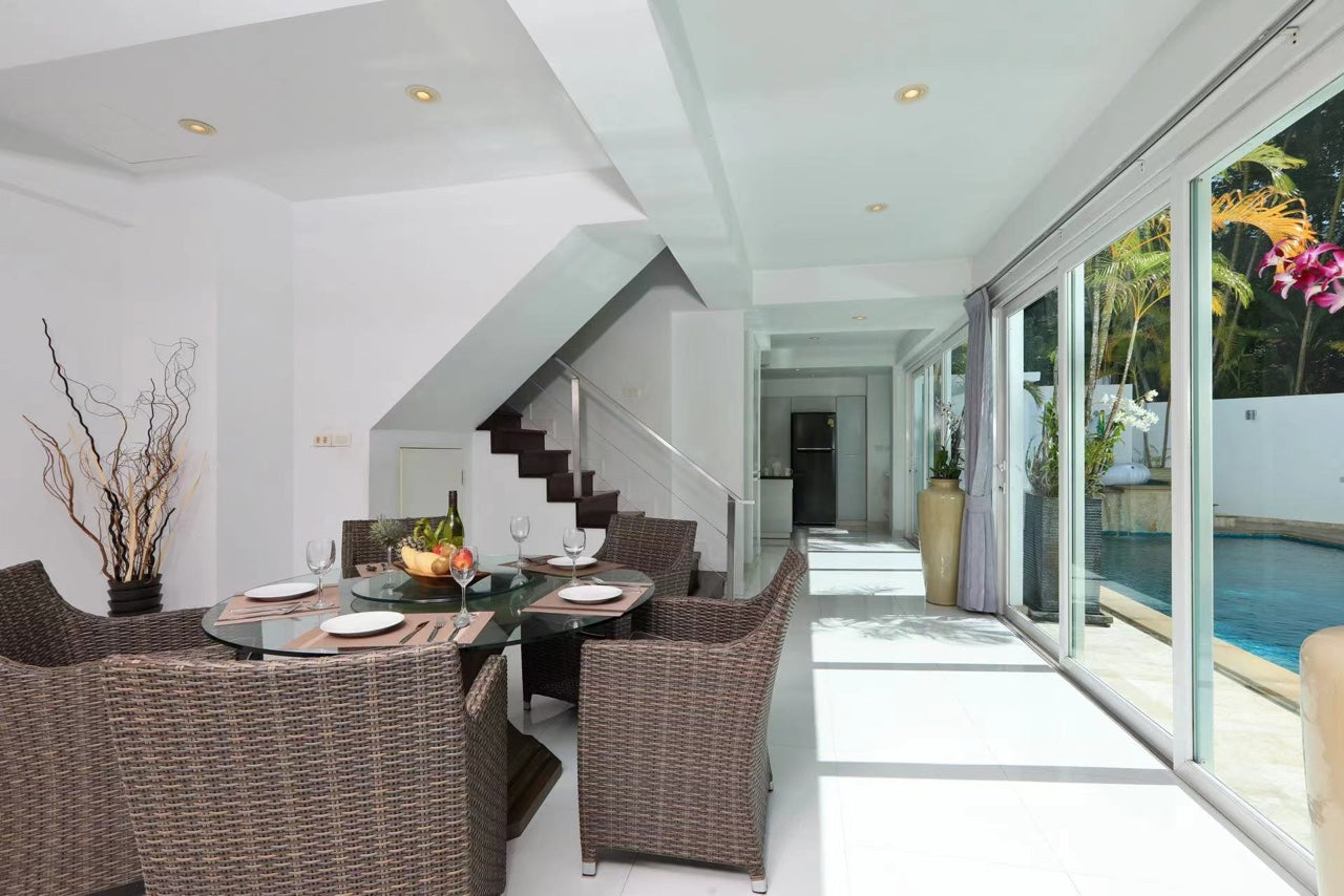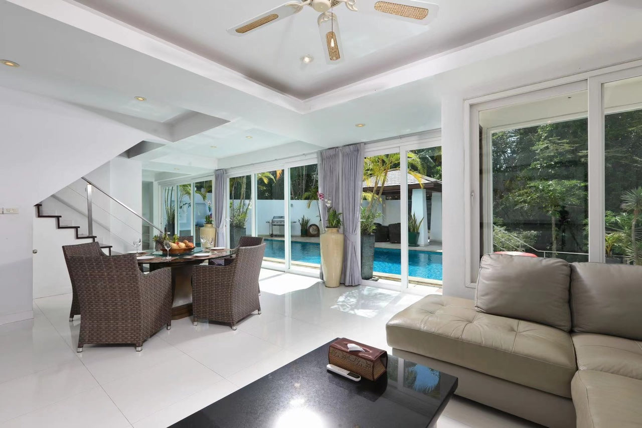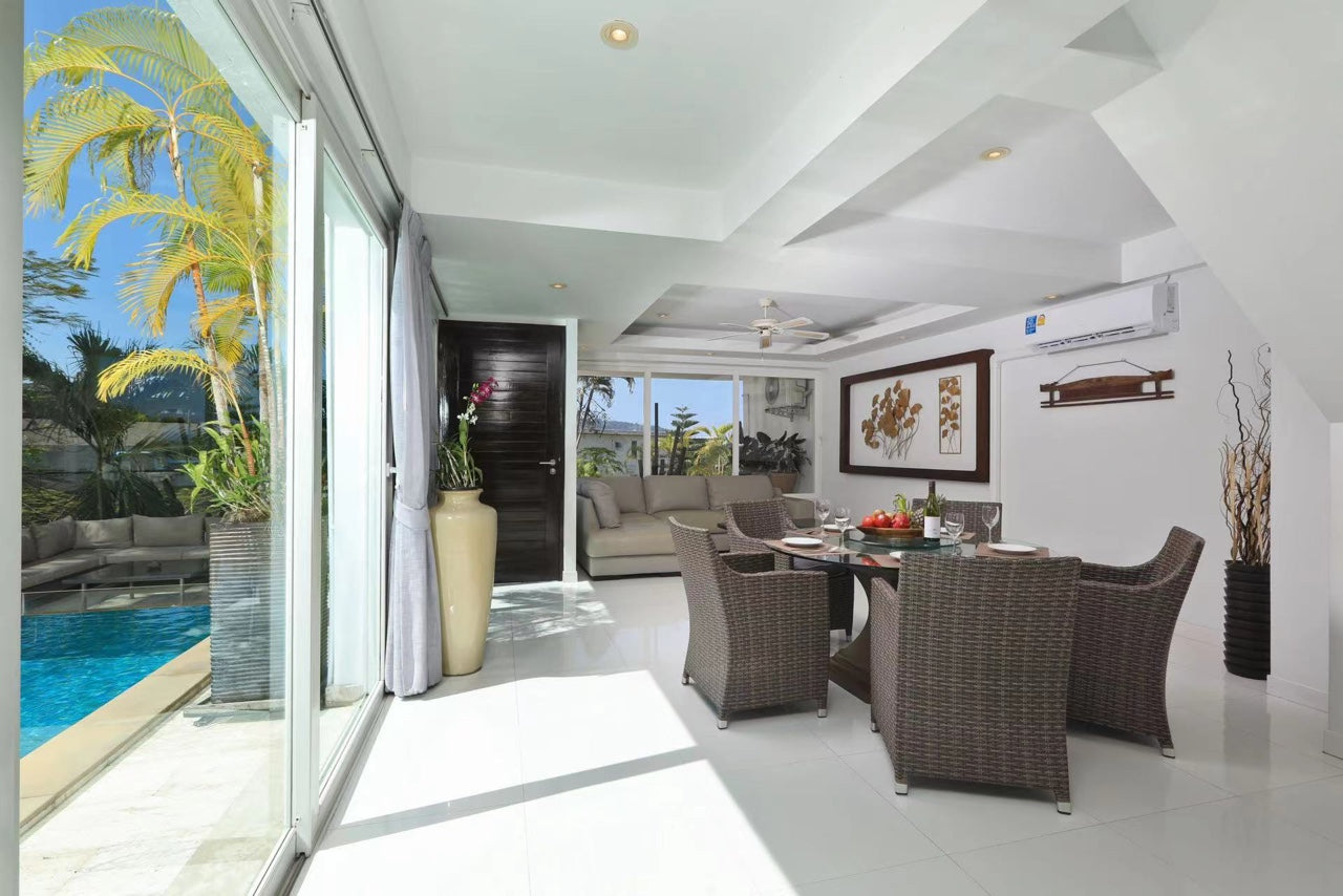 별장면적 약 800평방미터, 대형 수영장 18m×4m, 24시간 순환여과시스템을 갖추고 있으며, 빠통 2가 부근에 위치하고 있으며, 위치가 매우 우수합니다. 침실 2개는 오션뷰, 침실 2개는 마운틴뷰로 모두 1.8m 침대를 사용하고 있으며, 집 전체는 고속 와이파이 커버(1000M/S)입니다.