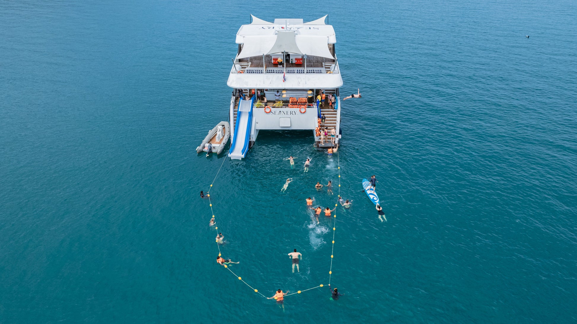 | 12:30 PM | 라바섬에서 배에 설치된 워터 슬라이드와 패들보드를 즐기기 | ||